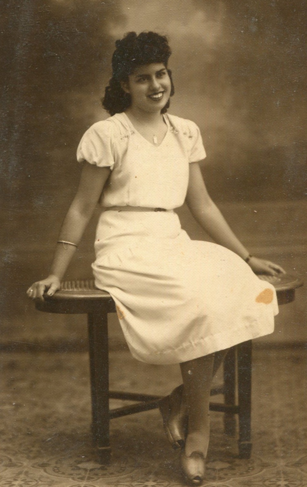 Joven sentada, de vestido claro
