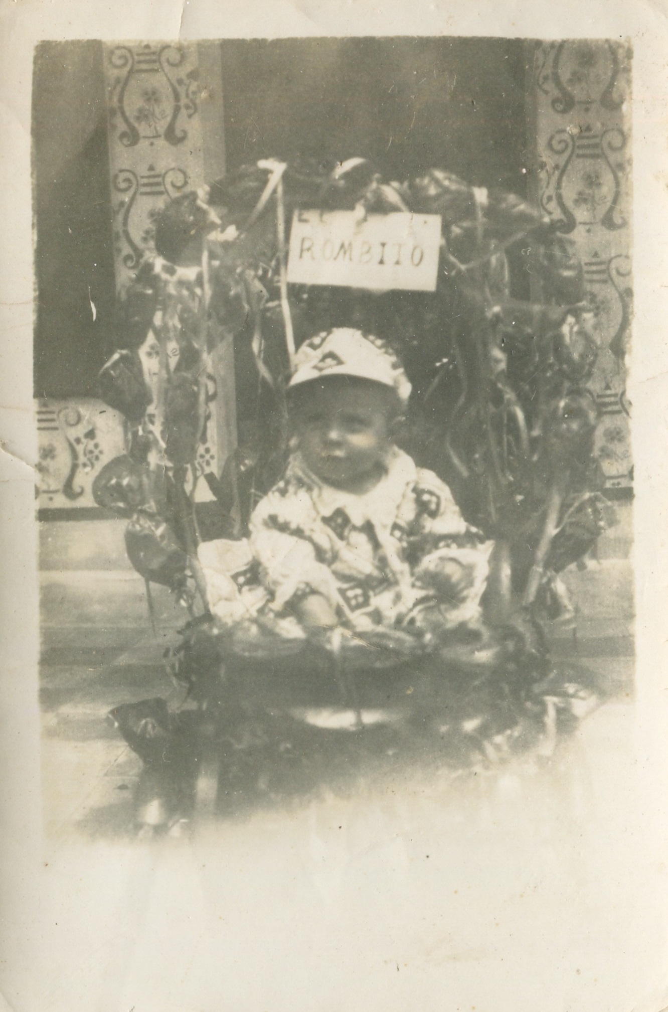 Niño en una silla, con arreglo vegetal