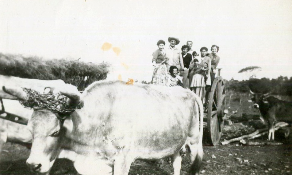 Una familia en alzaprima, el buey en primer plano