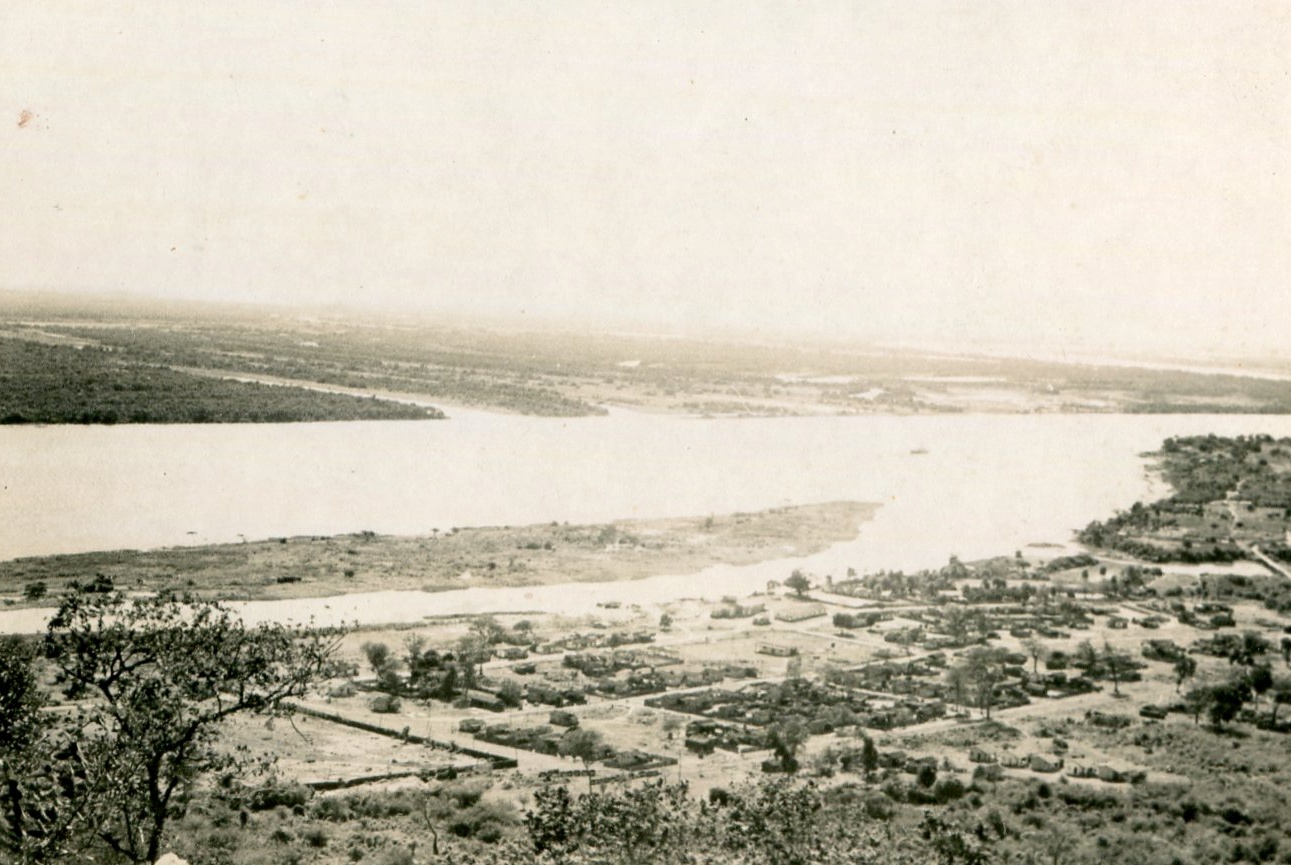 Vista aérea de un pueblo, en la rivera